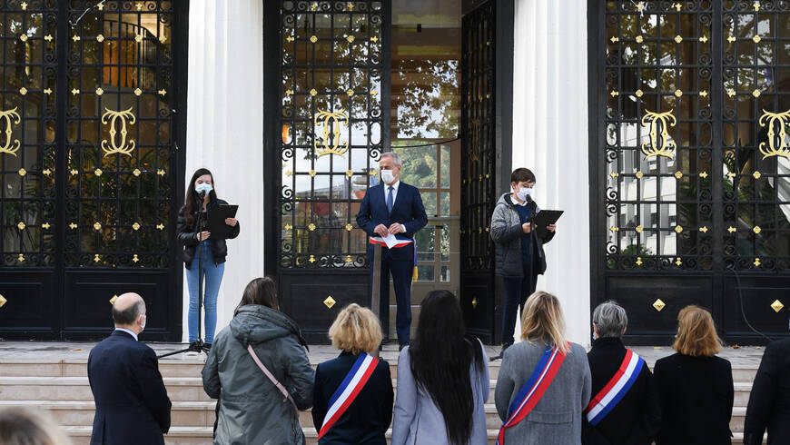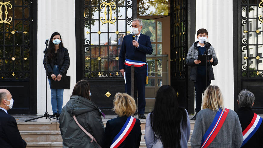La Ville de Courbevoie, en plaçant ses drapeaux en berne, a tenu à rendre un hommage vibrant au professeur, Samuel Paty, assassiné parce qu’il faisait son métier, enseigner.