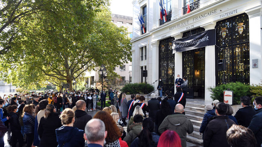 En hommage à Samuel Paty un rassemblement a été organisé devant l’Hôtel de ville mercredi 21 octobre à 12h.