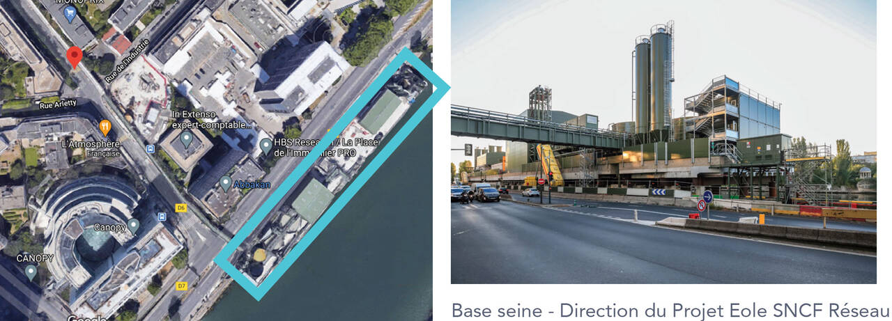 - Puits de ventilation (zone rouge) : déblais du creusement de la gare de La Défense