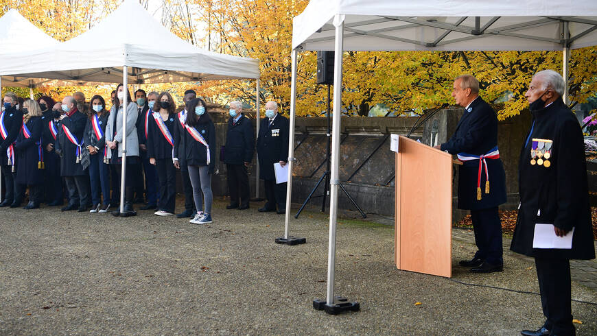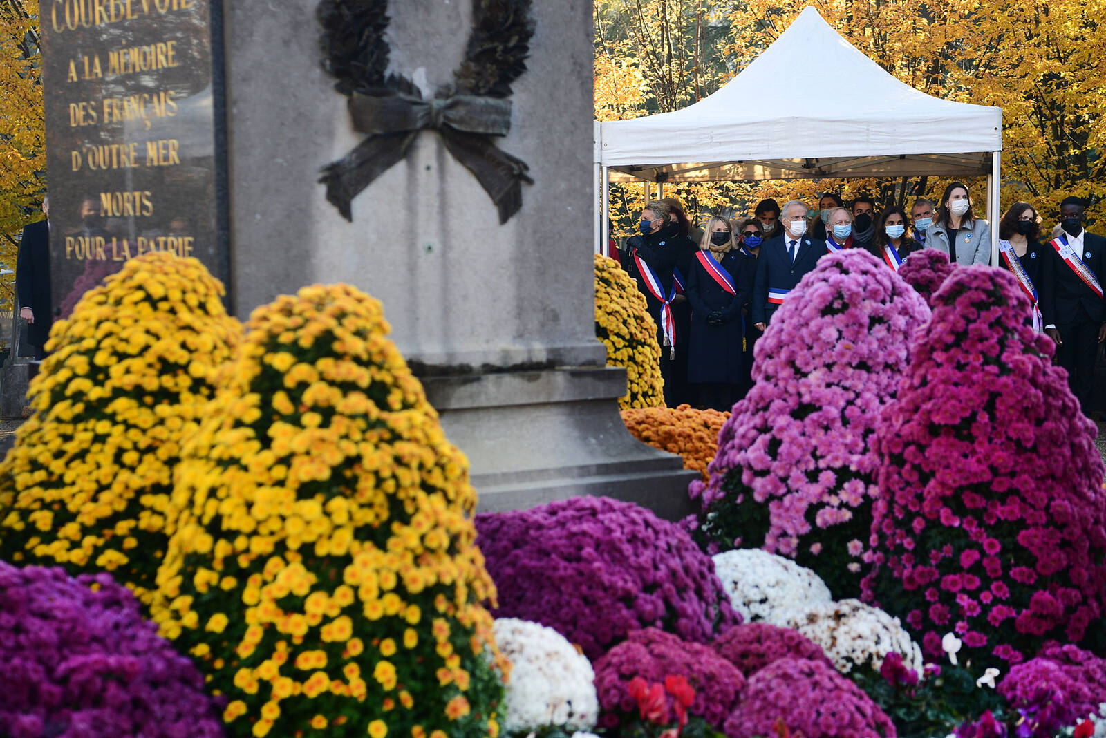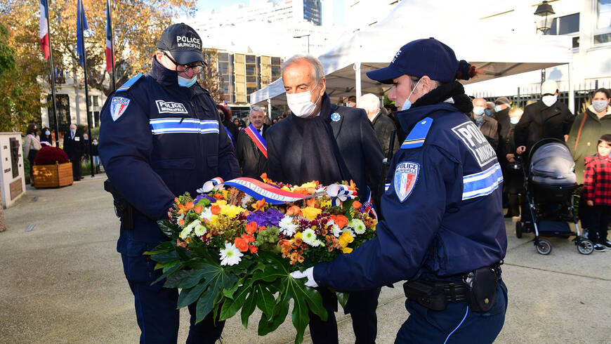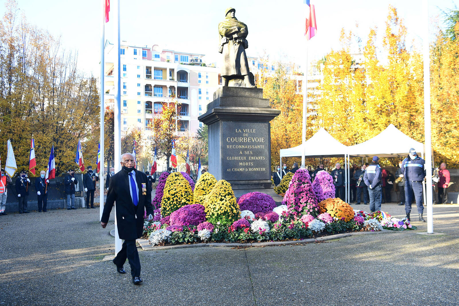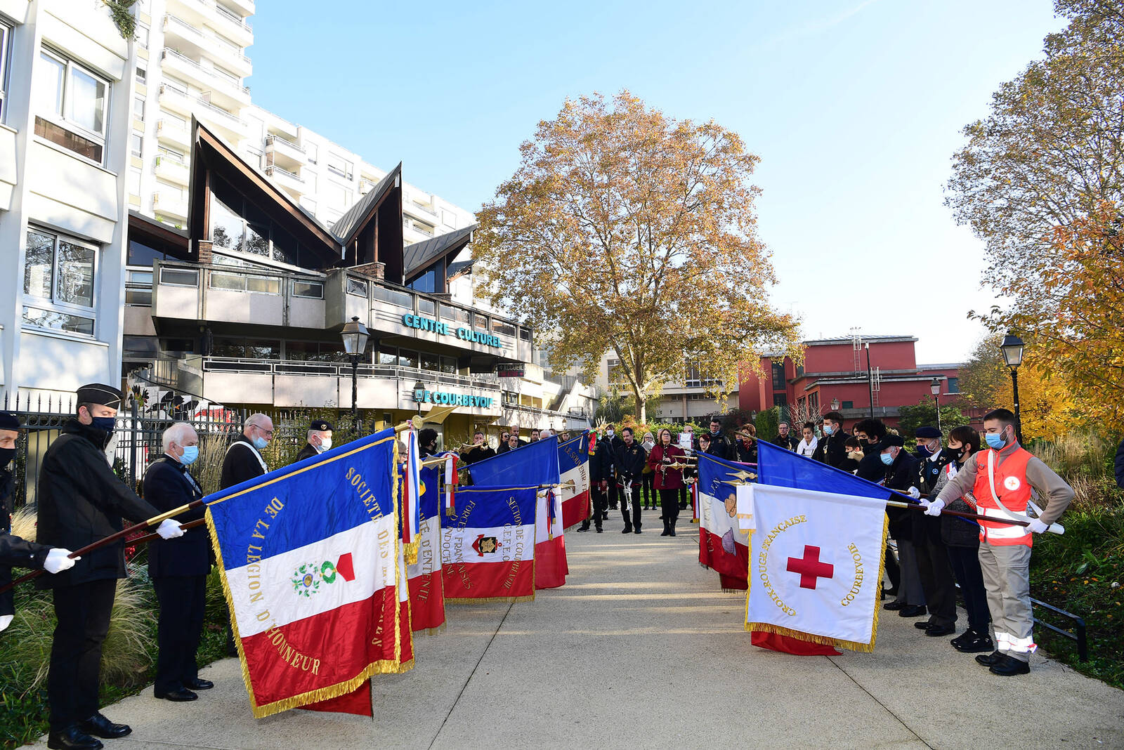 103e anniversaire de l'Armistice de 1918, ce matin au square de l'hôtel de ville et aux monuments aux morts du cimetière des Fauvelles, M. le Maire et les élus de Courbevoie ont rendu hommage à tous les soldats morts pour la France.