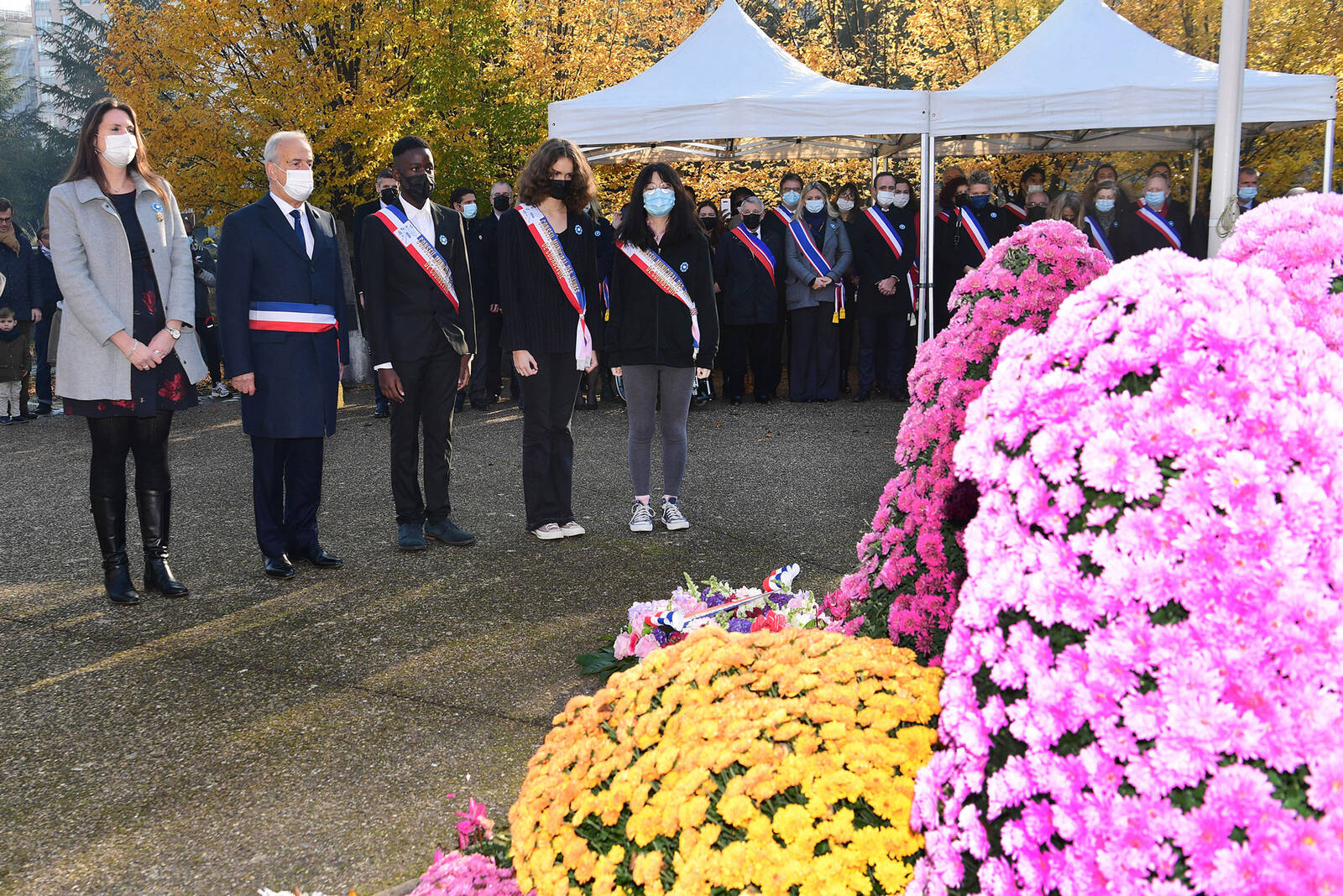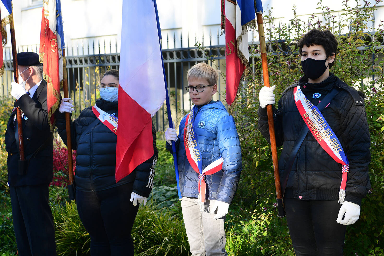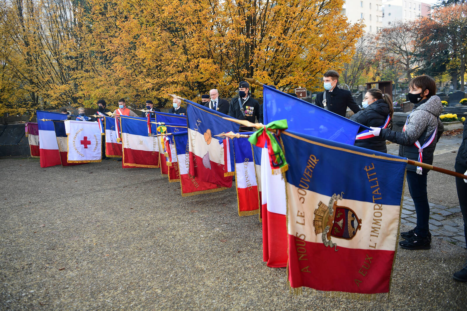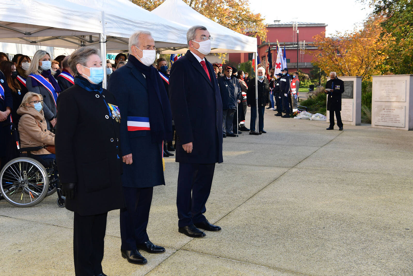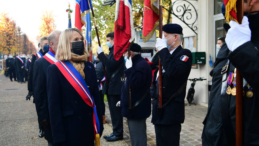 103e anniversaire de l'Armistice de 1918, ce matin au square de l'hôtel de ville et aux monuments aux morts du cimetière des Fauvelles, M. le Maire et les élus de Courbevoie ont rendu hommage à tous les soldats morts pour la France.