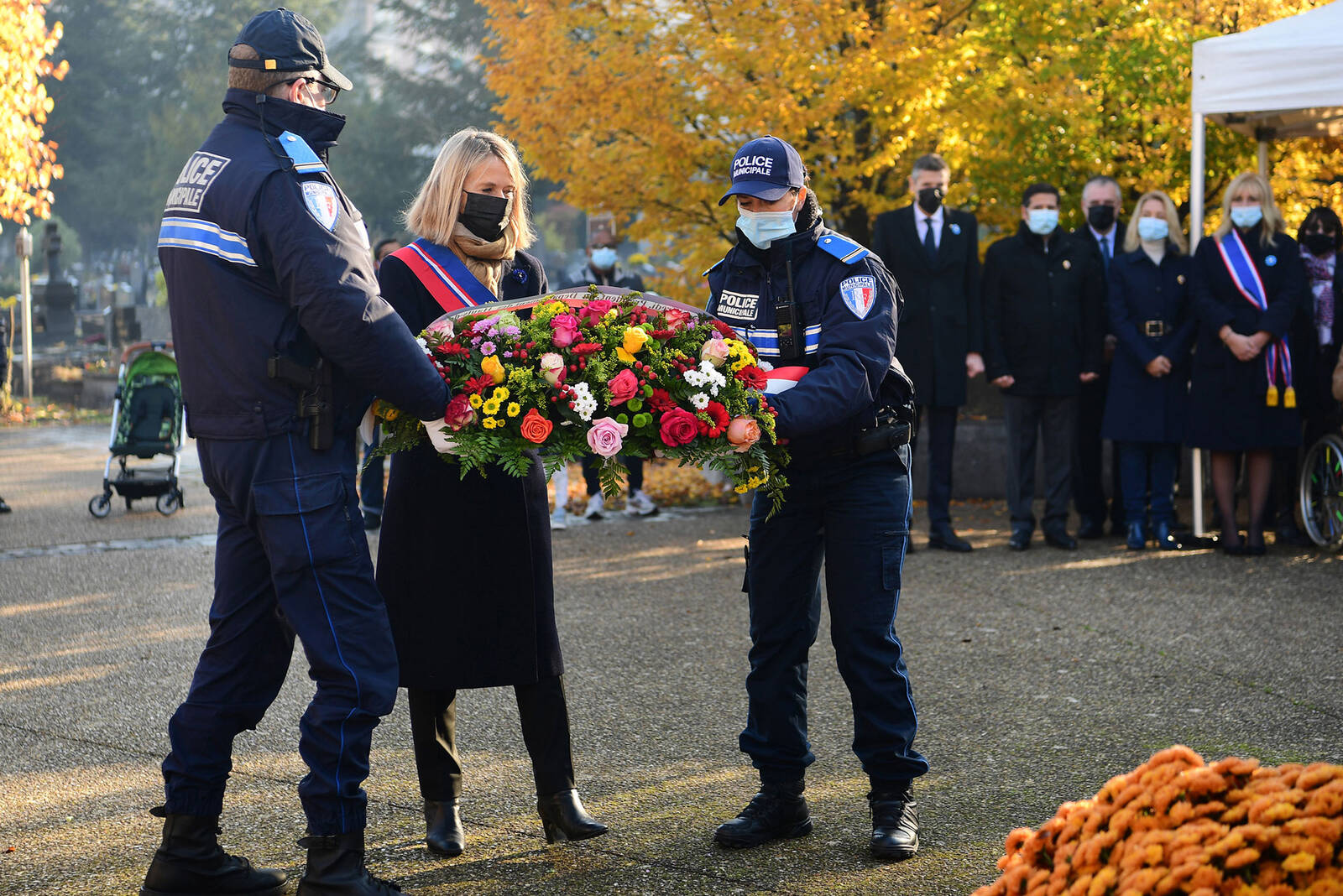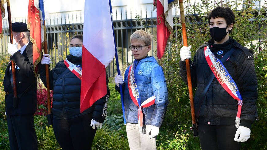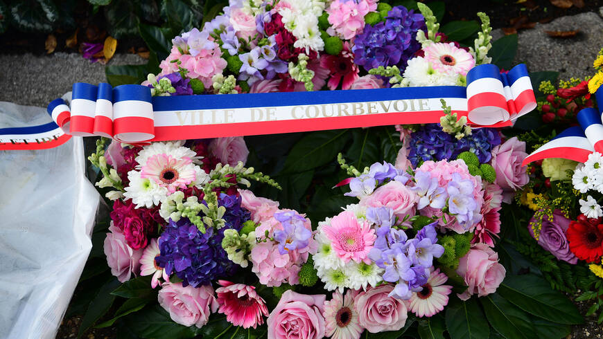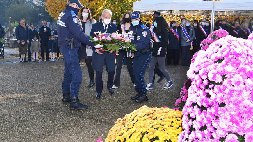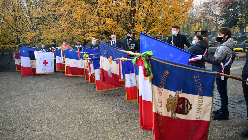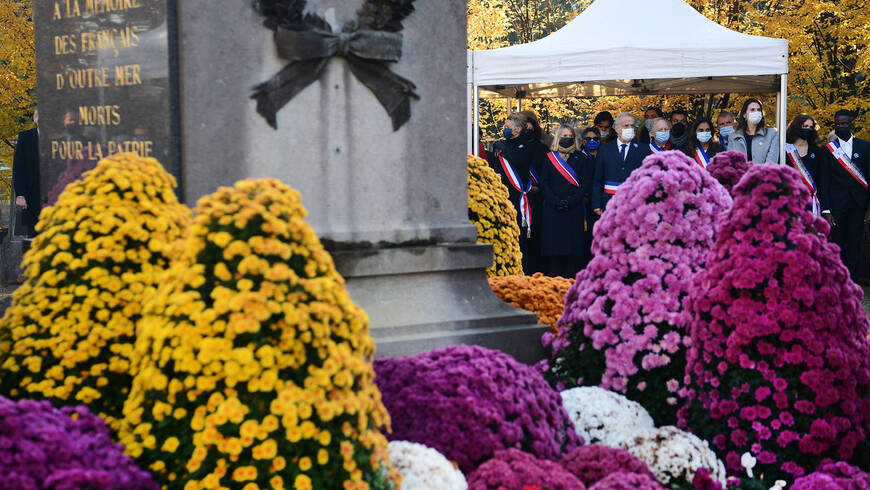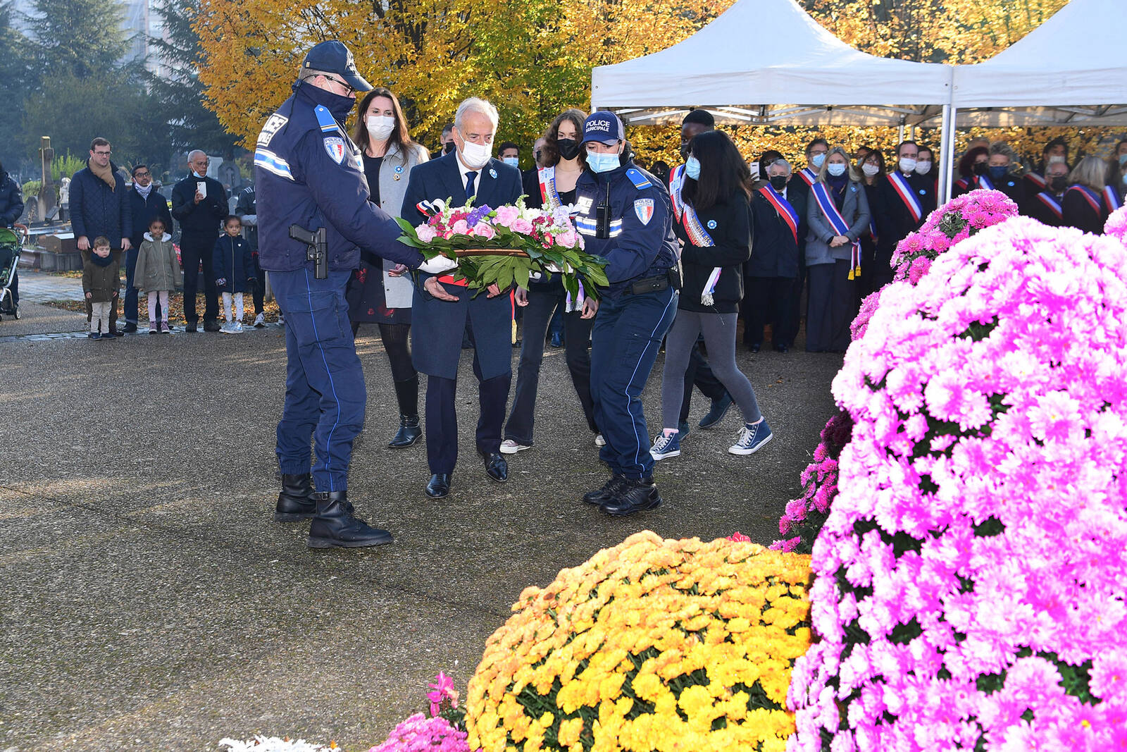 103e anniversaire de l'Armistice de 1918, ce matin au square de l'hôtel de ville et aux monuments aux morts du cimetière des Fauvelles, M. le Maire et les élus de Courbevoie ont rendu hommage à tous les soldats morts pour la France.