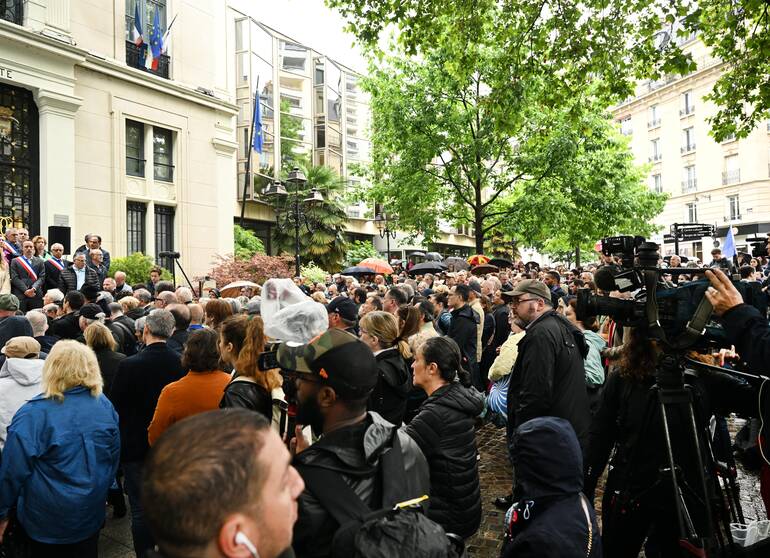 Aujourd’hui, je réalise tristement, qu’il y a un peu plus d’an, je me tenais à cette même place, sur le perron de cette mairie, entouré du conseil municipal, pour pleurer la mort de Dominique Bernard. Et avant lui celle de Samuel Paty.