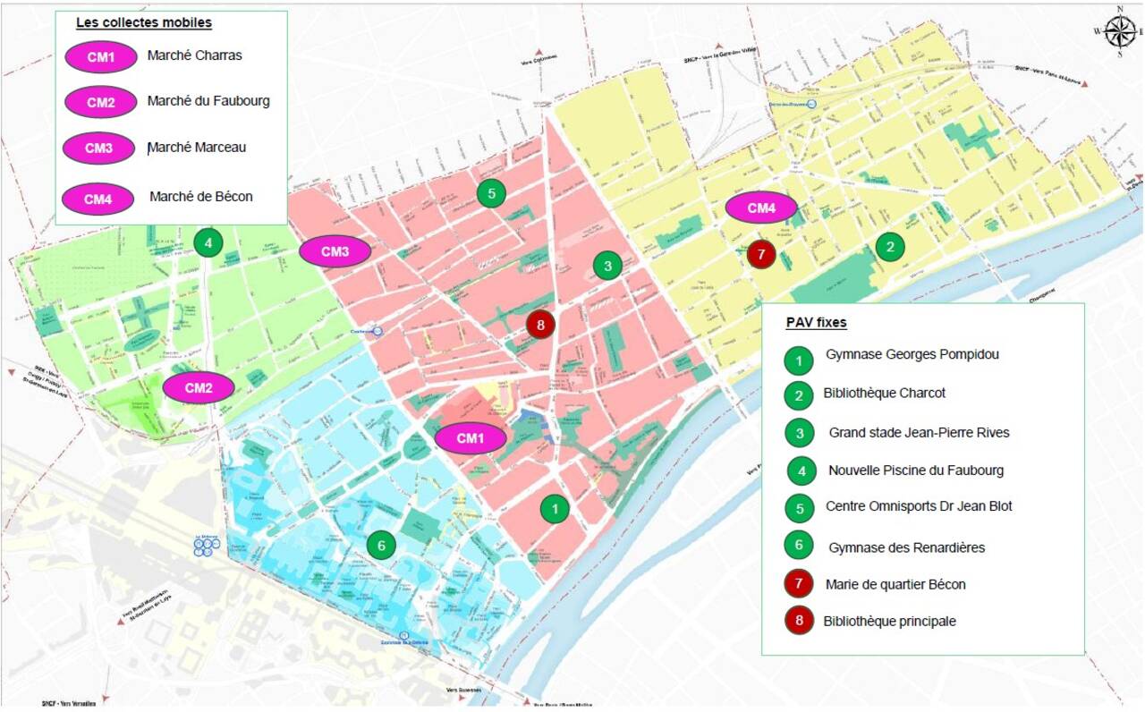 Les points d'apports volontaires sont fixes, mais les collectes mobiles reviennent régulièrement sur les 4 marchés de la ville :