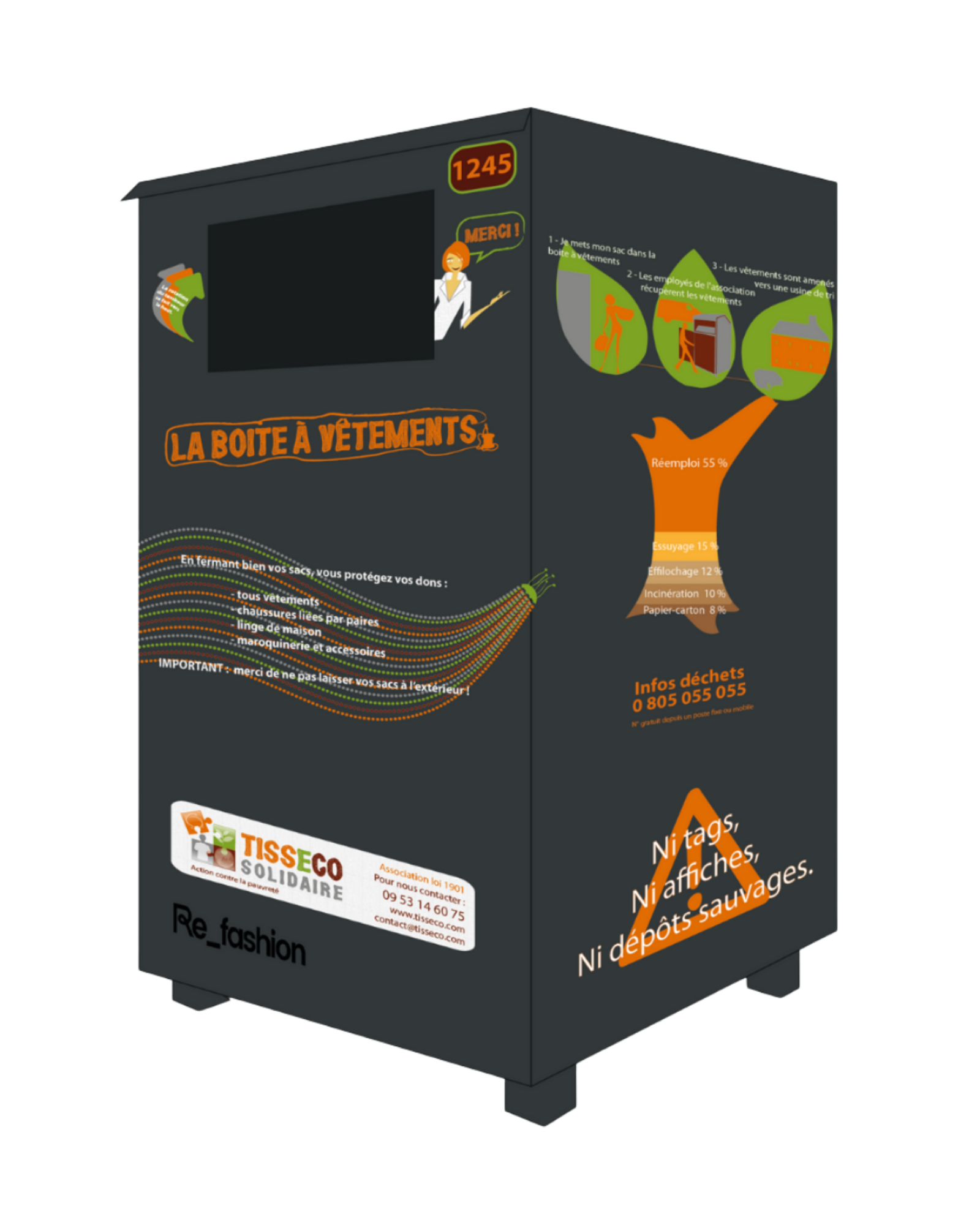 Vous pourrez dorénavant déposer vos vêtements usagés dans des points d’apports volontaires (PAV) et/ou des collectes mobiles sur les marchés.