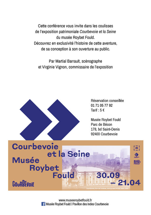 Cette conférence vous invite dans les coulisses de l'exposition patrimoniale Courbevoie et la Seine du musée Roybet Fould. Découvrez en exclusivité l'histoire de cette aventure, de sa conception à son ouverture au public. La visite conférence est présentée par Martial Barrault, scénographe et Virginie Vignon, commissaire de l'exposition.