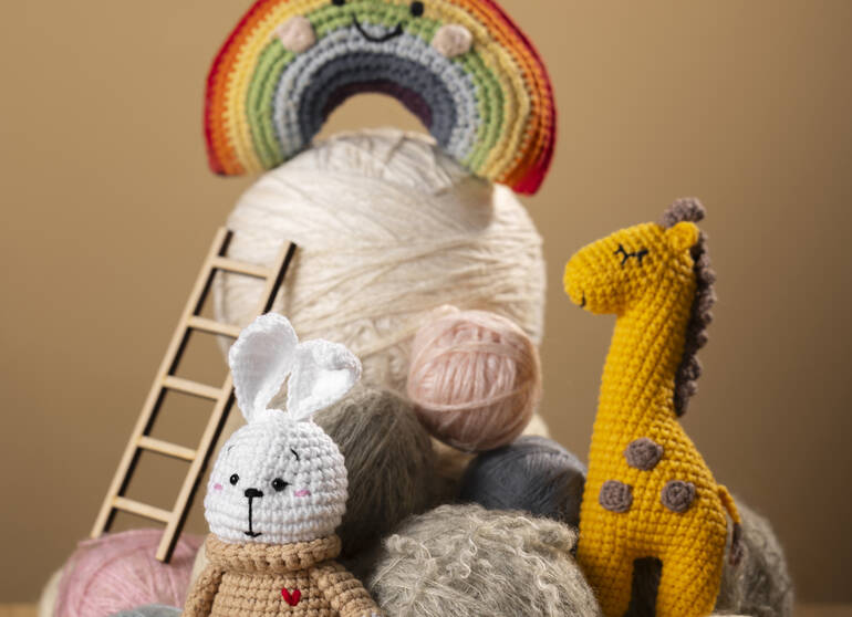 Tricot, crochet, couture, pompons… chacun apporte son savoir-faire et sa créativité pour imaginer de petits trésors destinés aux tout-petits : tapis sensoriels, sculptures textiles, accessoires de jeu et d’exploration.