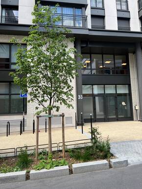Situé dans un alignement d’arbres plantés dans les massifs récupérant l’eau de pluie longeant les trottoirs de la rue Paul Bert, cet arbre n’est ni charme, ni houblon mais il participe bien à la végétalisation de l’écoQuartier Village Delage.