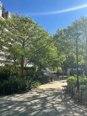 - Toujours à Courbevoie, il y a aussi d’autres frênes comme les frênes du Caucase à feuillage automnal pourpre notamment dans le parc du Vieux cimetière, identifiable par un flashcode, mais aussi dans le square du Cayla et en alignement dans l’avenue Puvis de Chavannes sur trois rangs.
