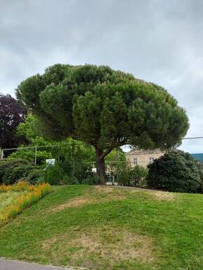 - Nom commun pin parasolNom latinPinus pineaSiteParc de Bécon