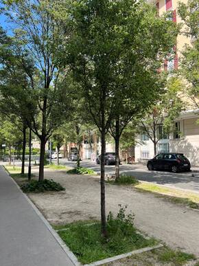- A Courbevoie, un alignement de poiriers du Père Callery à port compact végétalise le côté est de la rue du Clos Lucé, face à la commune de Nanterre.