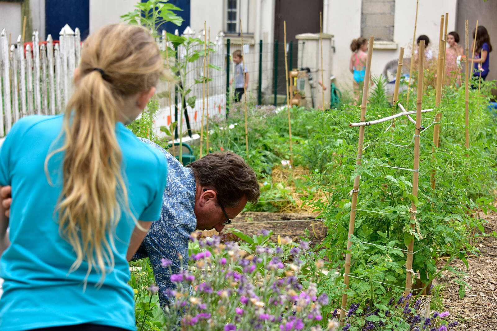 Dans un parterre, la gastronomie et la gourmandise sont à l'honneur grâce à deux poiriers palissés, des framboisiers et des groseilliers. Sur la partie sud du site, take place des parcelles de jardins partagés , confirmant combien la notion de partage est essentielle en ce lieu.