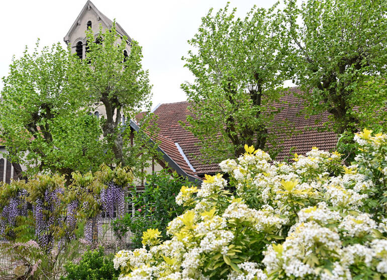 Depuis le parc, se remarquent au-delà de ses limites les silhouettes de quelques bâtiments emblématiques de la ville comme le centre culturel Haussmann ou encore l’église Saint-Maurice de Bécon de style néo-roman en béton armé et dont l'orgue d'Aristide Cavaillé-Coll (1865) a été classé Monument historique en 1985.