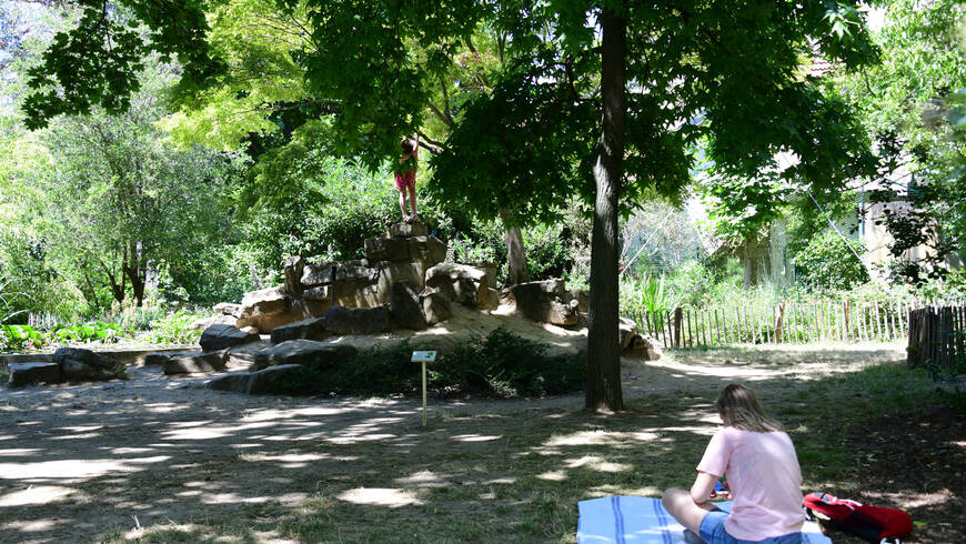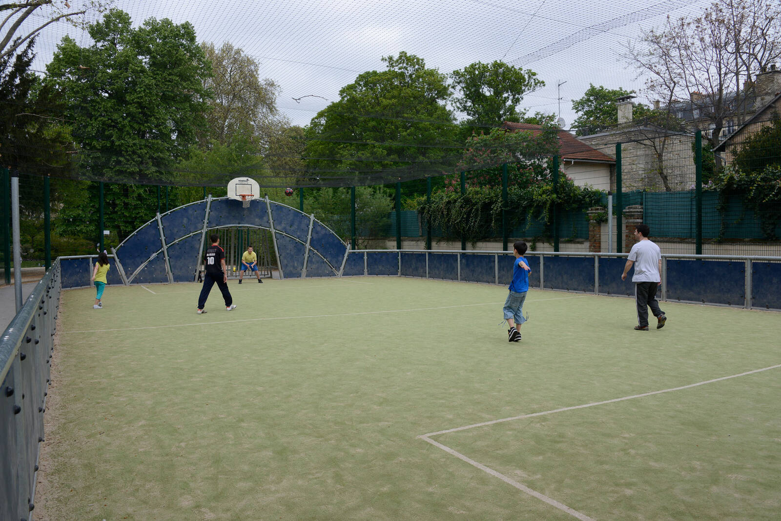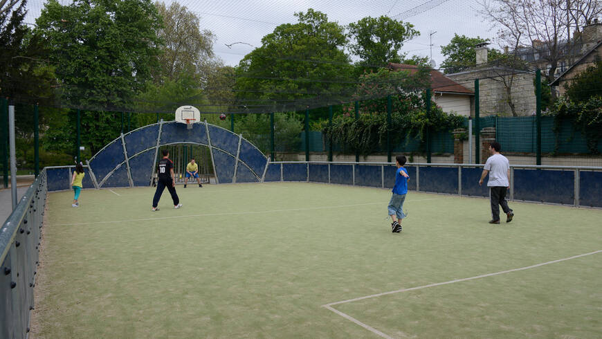 Les plus grands ont aussi à leur disposition un terrain multisports au pied de platanes. La partie nord-ouest du parc est aménagée en calme promenade avec des bancs en bois reliant l’avenue Léon Bourgain et la rue Armand Silvestre, tout en appréciant notamment une lisière arbustive variée.
