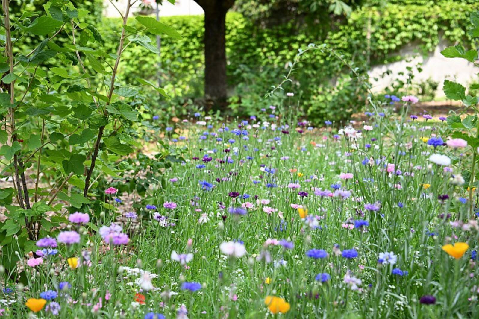 Dans ce cadre, 30 vignes, 6 fruitiers et plus de 600 plantes aromatiques ont été plantés, tandis que des peintures géométriques au sol de couleurs bleue, jaune, rouge, verte et blanche ont rendu la surface minérale bien plus attrayante.