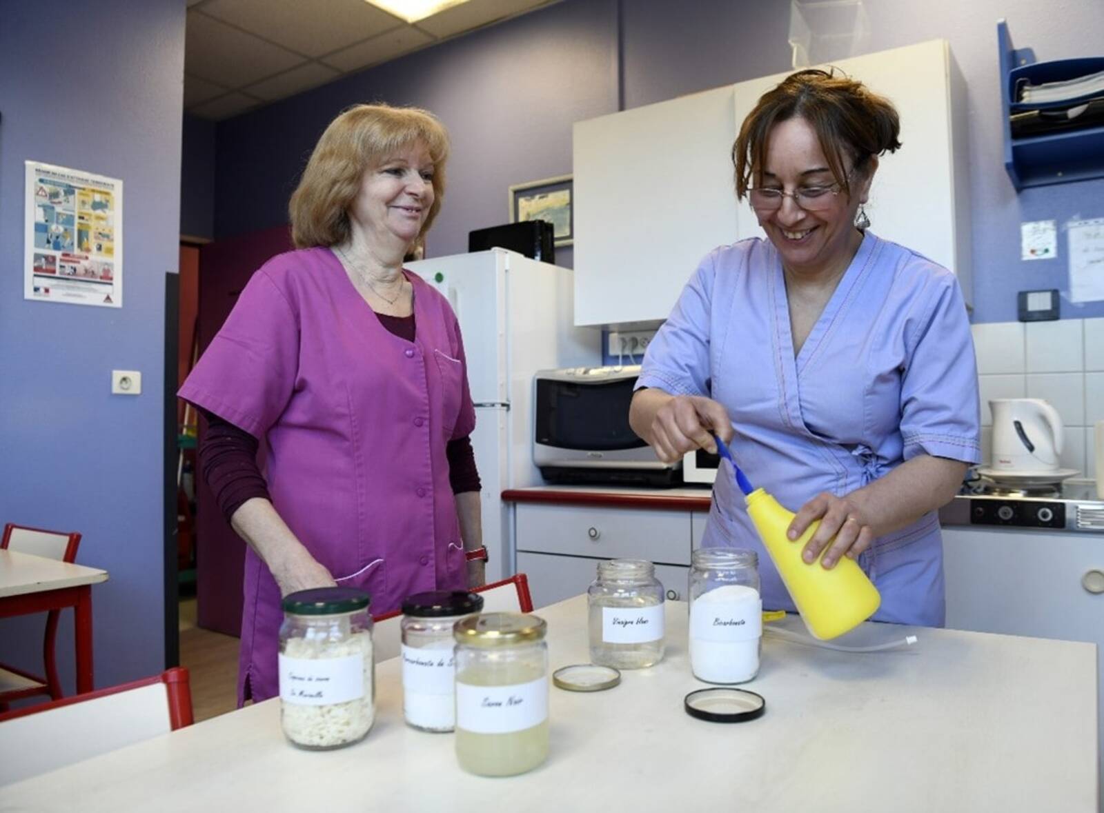 - Utilisation de produits d’hygiène et d’entretien naturels (fabriqués sur site à partir de savon de Marseille, de vinaigre, de bicarbonate tels que la lessive pour le linge ou le produit multi surface) ou éco-labellisés (pour le produit vaisselle) et de nettoyeurs vapeur